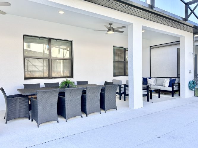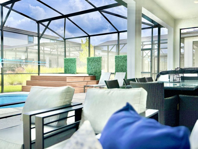 Esta espaçosa casa, completamente equipada, oferece 8 quartos e 8 banheiros meticulosamente planejados e decorados para proporcionar momentos inesquecíveis a famílias ou grupos de amigos em busca de uma experiência excepcional durante suas férias na Disney. A casa também conta com um PS5 para garantir ainda mais diversão para todos.