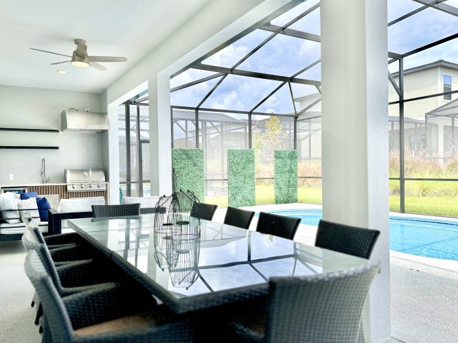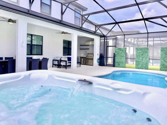 Além disso, a propriedade oferece uma área externa com uma Jacuzzi relaxante e uma Summer Kitchen perfeita para refeições ao ar livre. O espaço da piscina é ideal para momentos de descontração. Localizada estrategicamente a apenas 10 minutos dos Estúdios Universal, 1 minuto do SeaWorld e 8 minutos da Disney World, a casa oferece acesso rápido e fácil às principais atrações da região, restaurantes, outlets, lojas e muito mais. Não há localização melhor! A apenas 3 minutos a pé, o Clubhouse do Paradiso Grande oferece acesso gratuito e uma experiência incrível, projetada para a diversão de todas as idades.