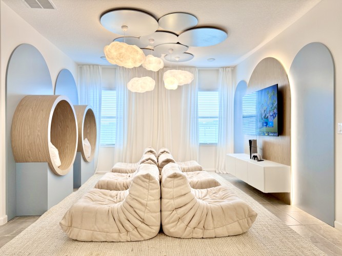 A casa, totalmente equipada, conta com 8 dormitórios e 8 banheiros em um espaço amplo, confortável e cuidadosamente decorado. Cada detalhe foi pensado para proporcionar momentos inesquecíveis para famílias e grupos de amigos que desejam transformar suas férias na Disney em uma experiência realmente extraordinária. Para completar, a propriedade possui uma sala de jogos temática, com mesa de bilhar, PS5, fliperamas, TVs, frigobar e uma área de estar aconchegante, o lugar perfeito para reunir todos e se divertir após um dia nos parques.