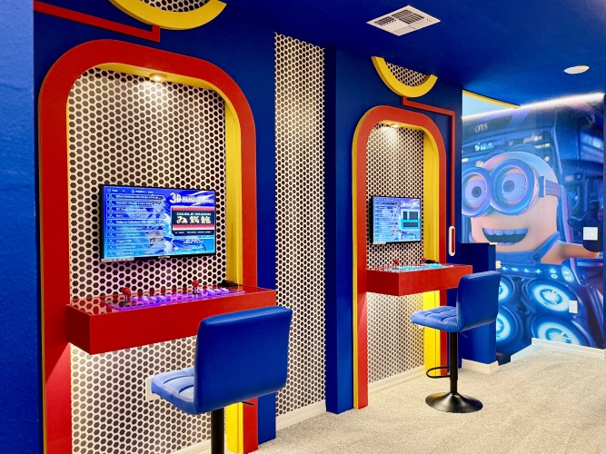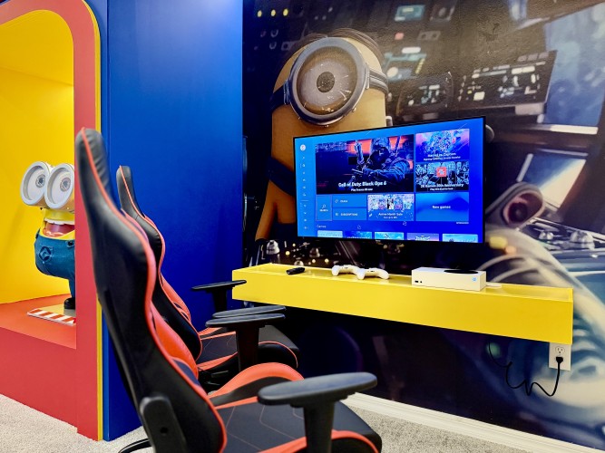 • Loft temático dos Minions com Xbox One, fliperama, mesa de air hockey e Smart TV Roku 43”