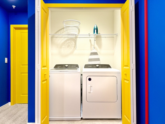 • Lavanderia com máquina de lavar e secadora para sua conveniência.