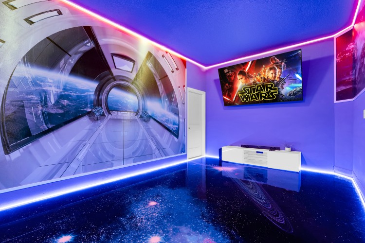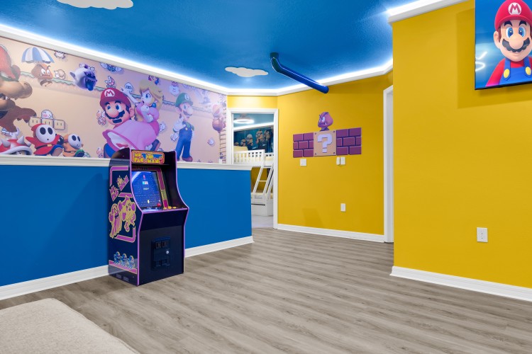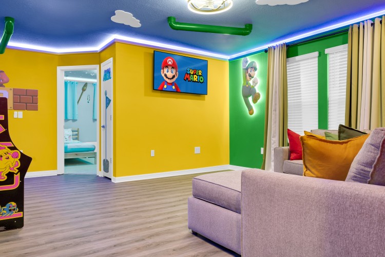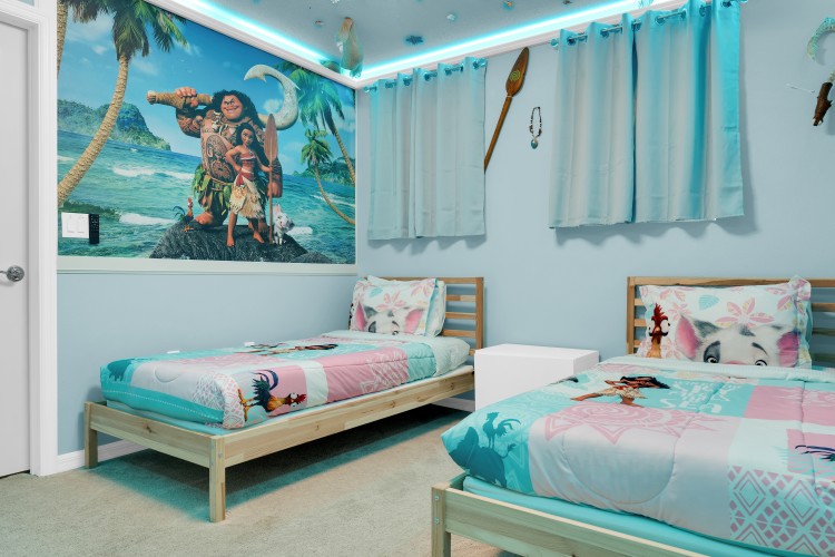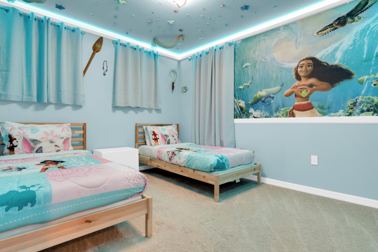 Desfrute de uma estadia inesquecível nesta espaçosa casa de férias com 5 suítes, piscina privativa e churrasqueira. A garagem foi transformada em uma sala de TV com tela gigante de 85”, perfeita para curtir em família. Os quartos são temáticos e encantadores — Mickey, Avatar, Harry Potter, Minions e Moana — criando momentos mágicos para adultos e crianças. Localizada no Windsor Island Resort, a poucos minutos da Disney, oferece acesso completo a uma área de lazer incrível com lazy river, toboáguas, mini golfe, splash pad, bar, salão de jogos e muito mais.