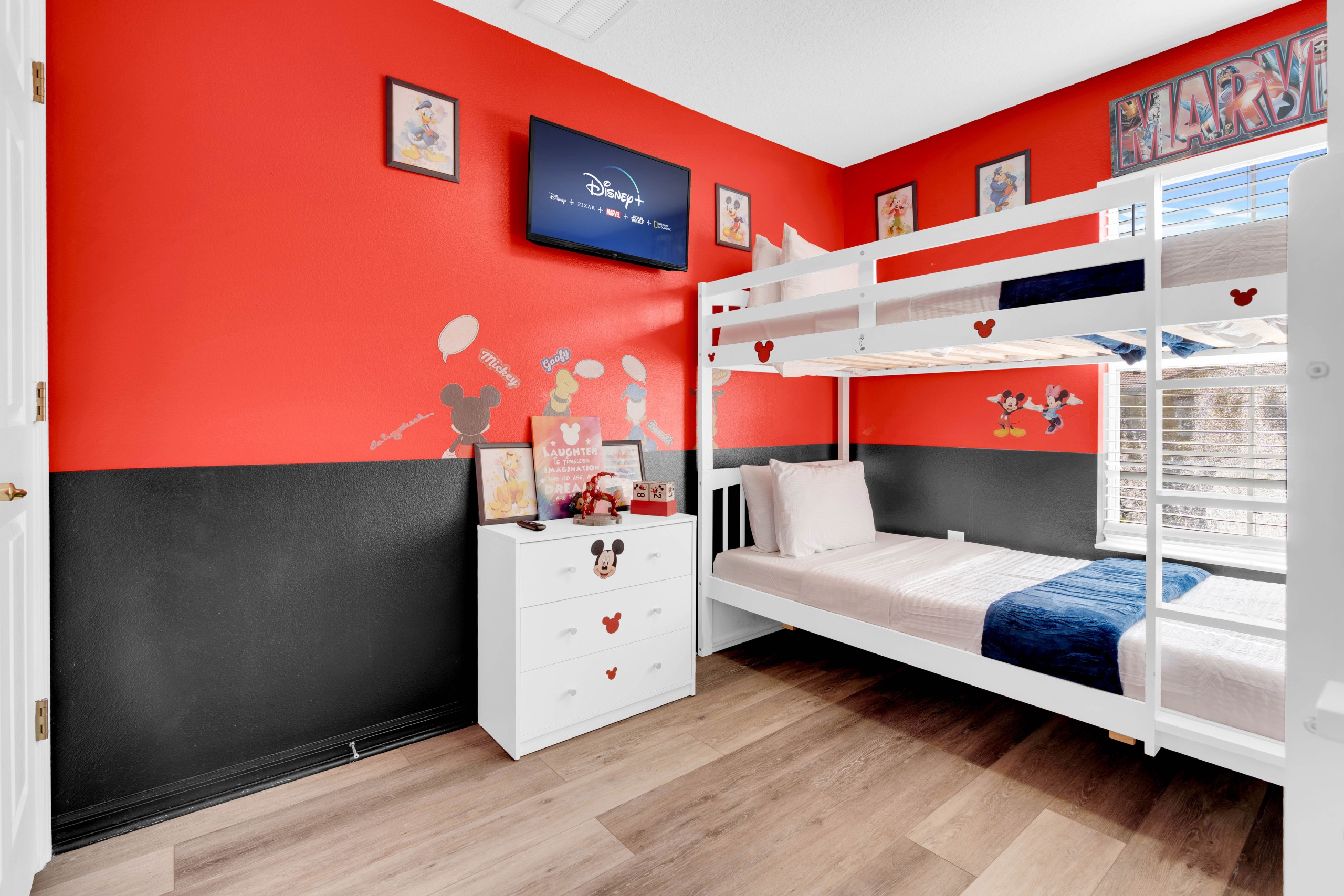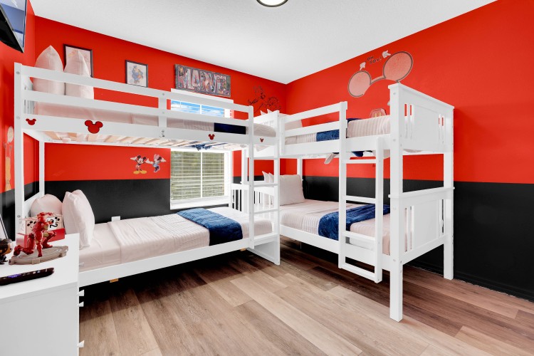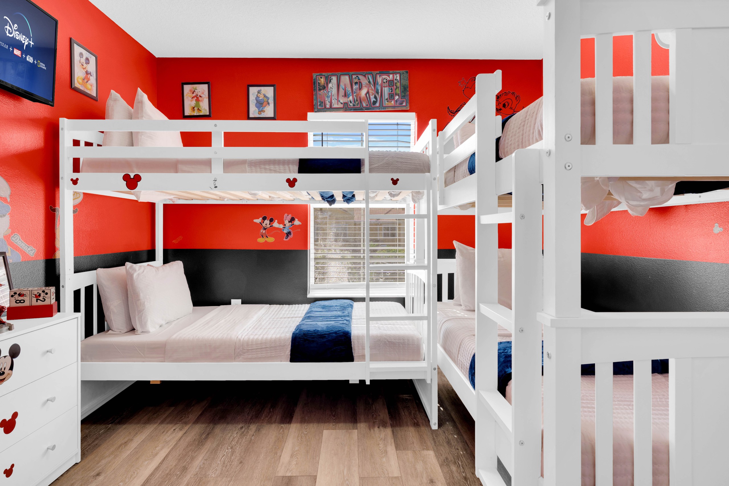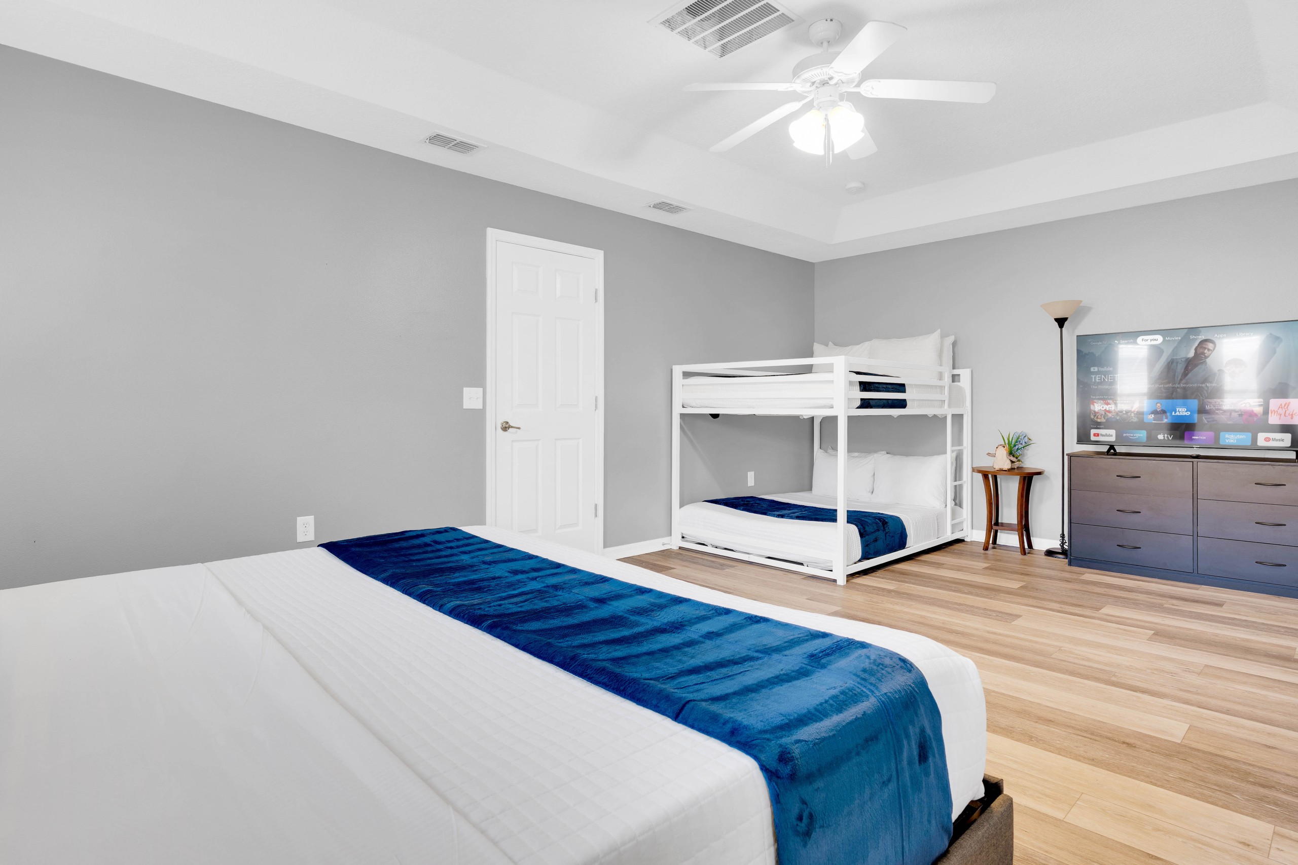 • 1 quarto com duas beliches, totalizando 4 camas de solteiro, e TV Roku de 32”