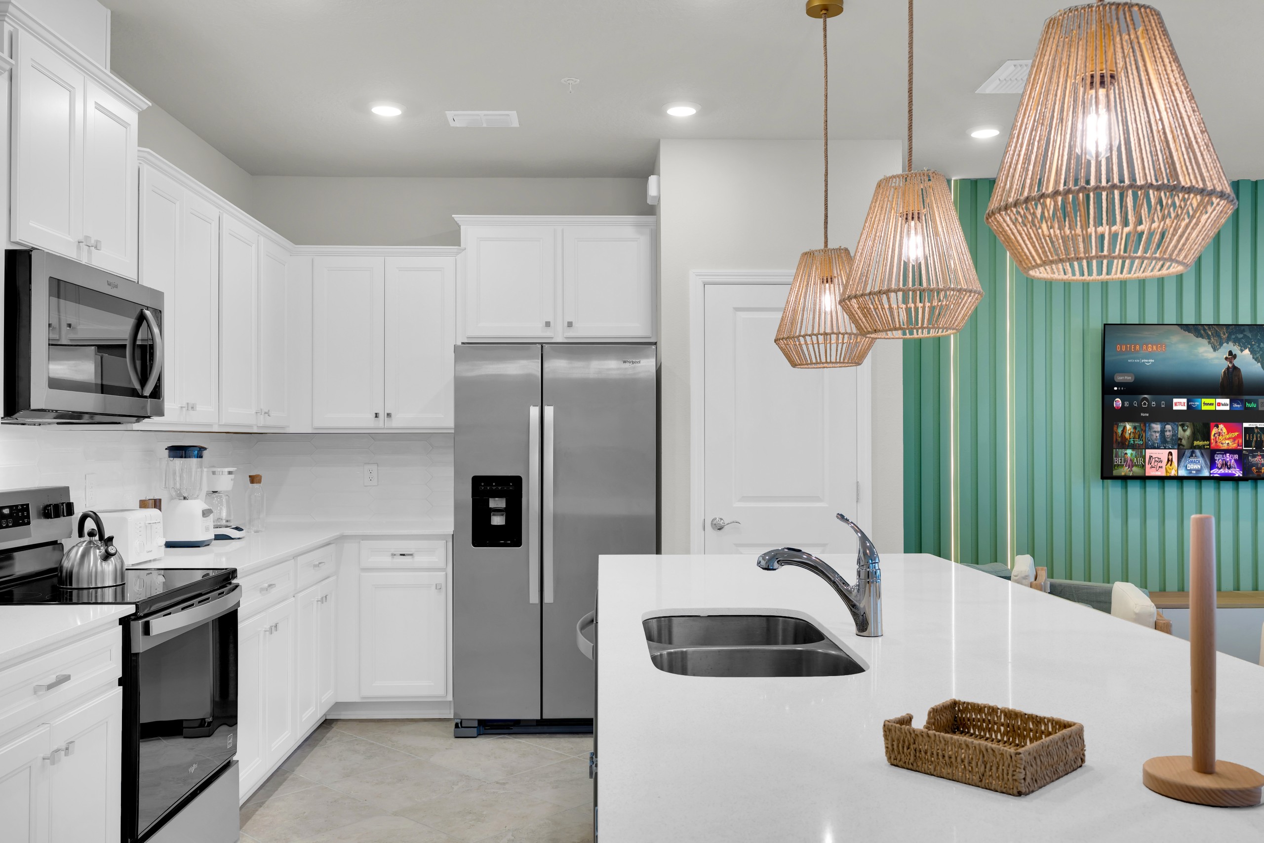 • Cozinha completa com eletrodomésticos em inox