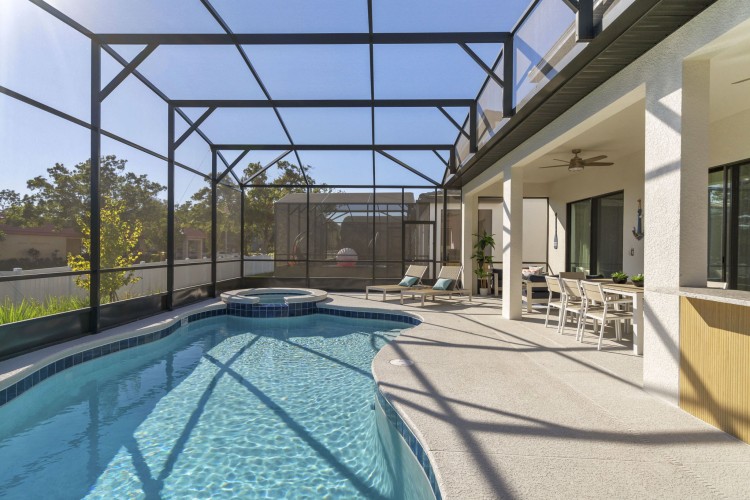 - Área externa privativa com piscina e spa, Summer Kitchen, TV e móveis de pátio confortáveis;