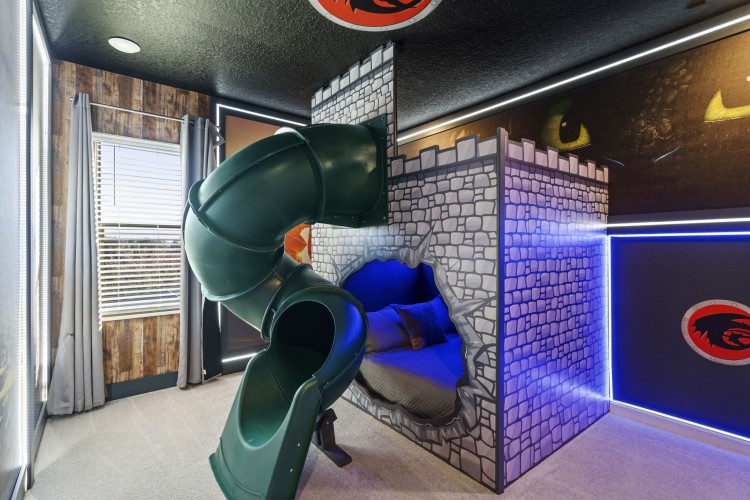- 2 Suítes, cada uma com 1 beliche com colchões de tamanho Full (temas Encanto e Dragões);