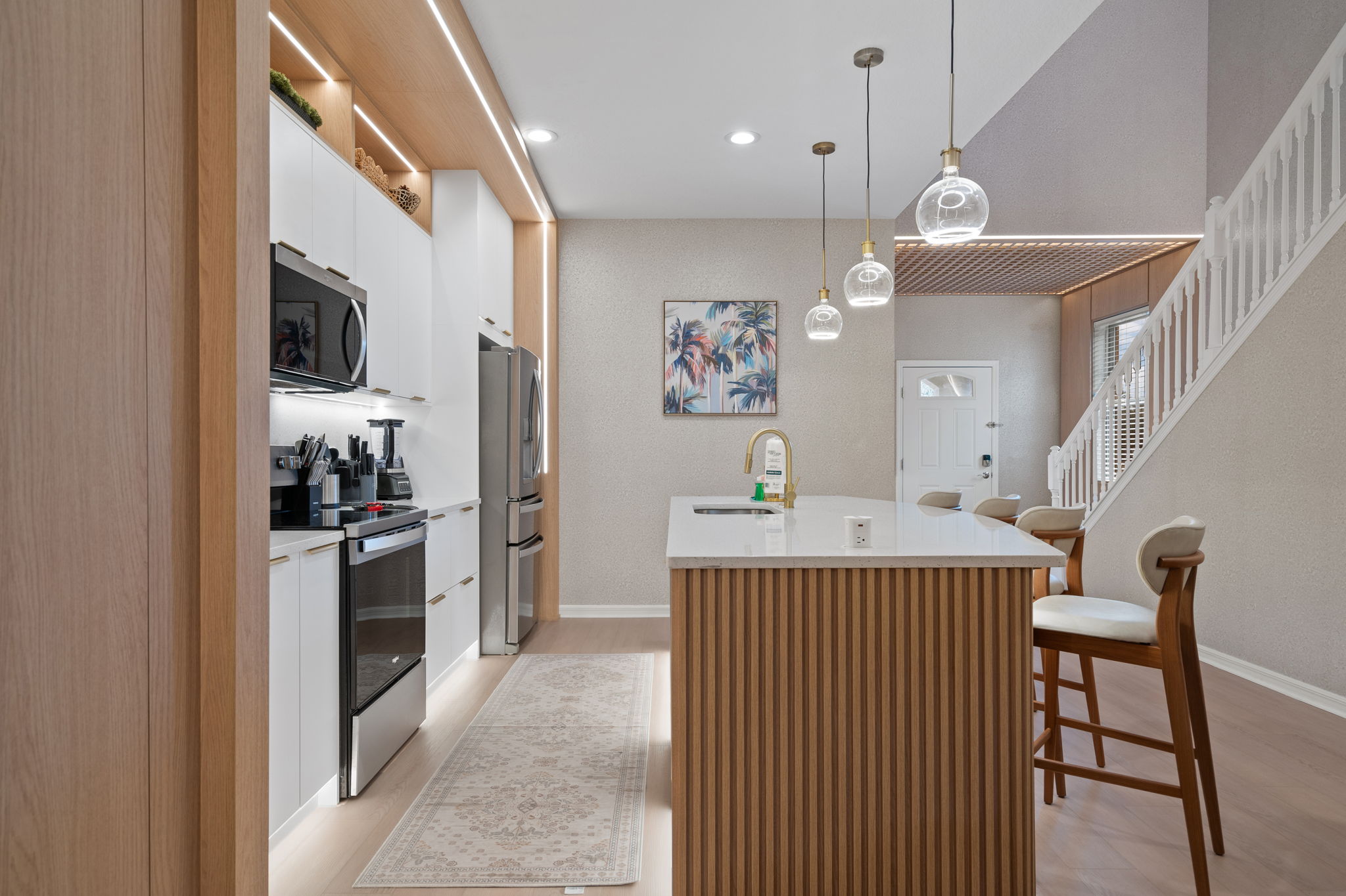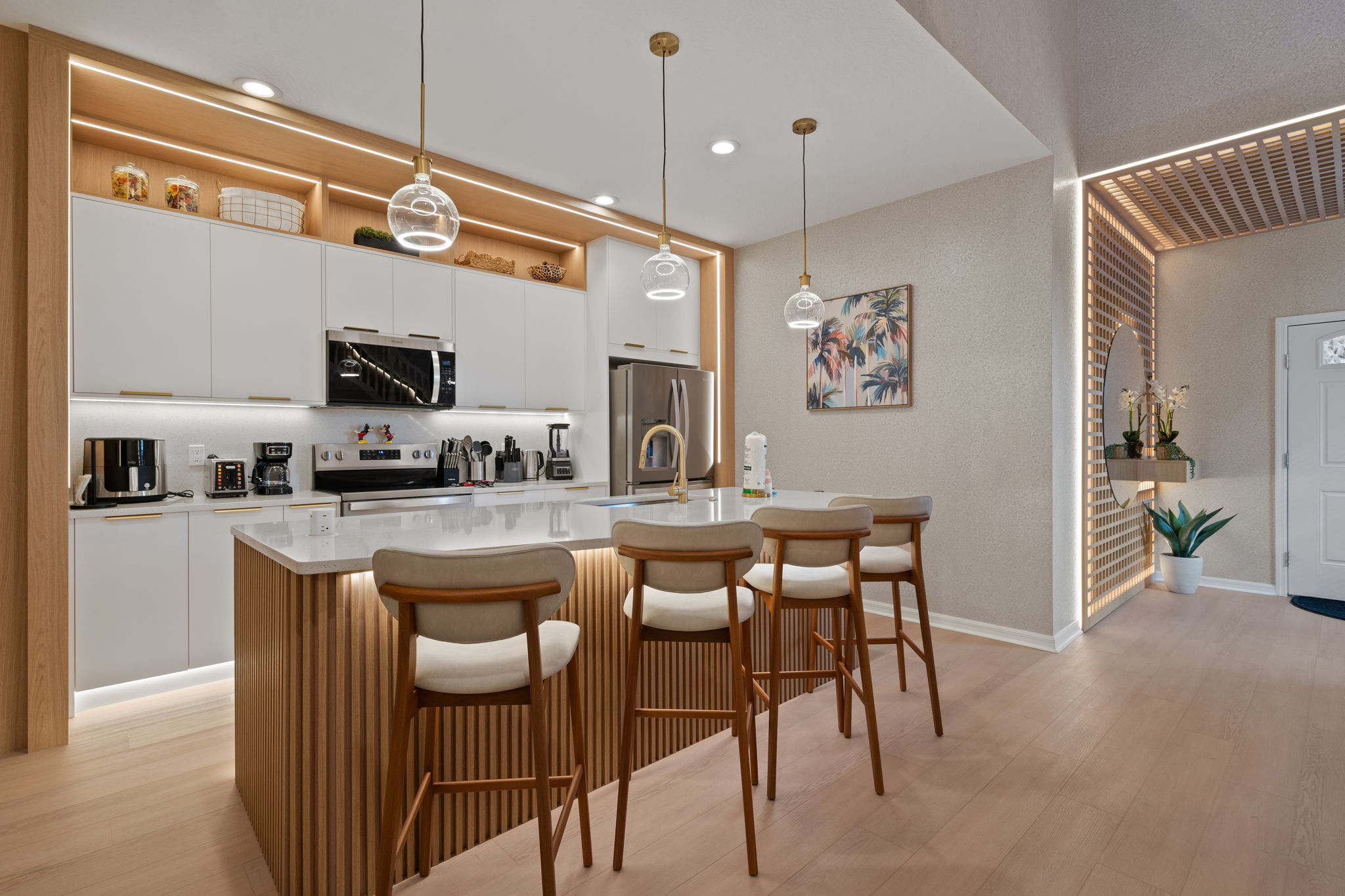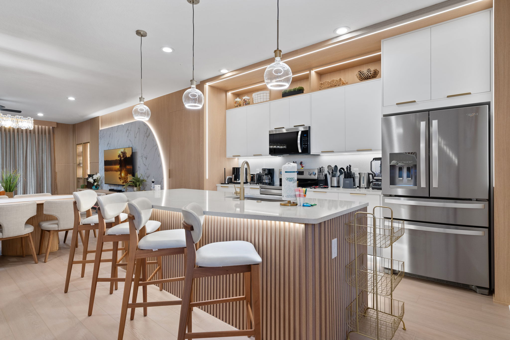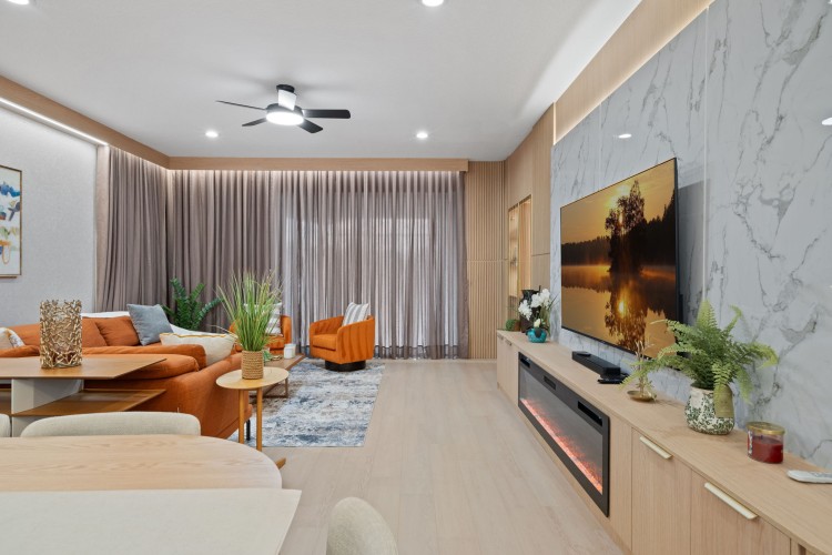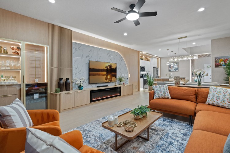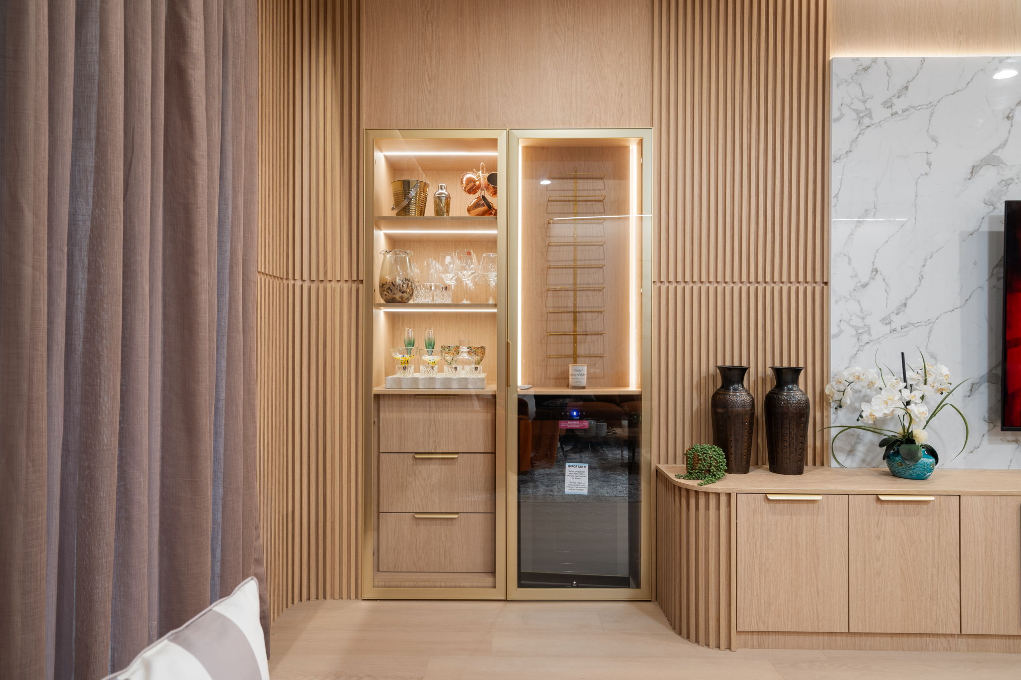 • Sala de estar com lareira elétrica e adega climatizada (wine fridge)
