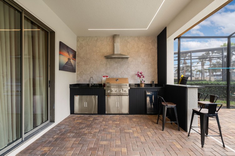 • Área de lazer privativa com piscina, summer kitchen e TV ao ar livre