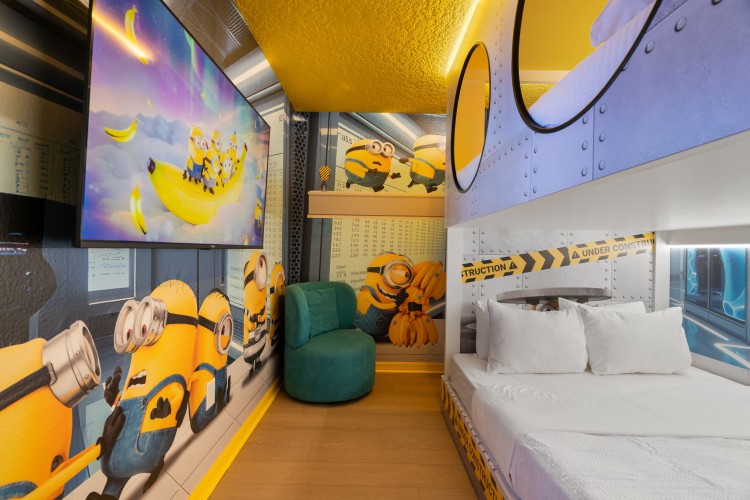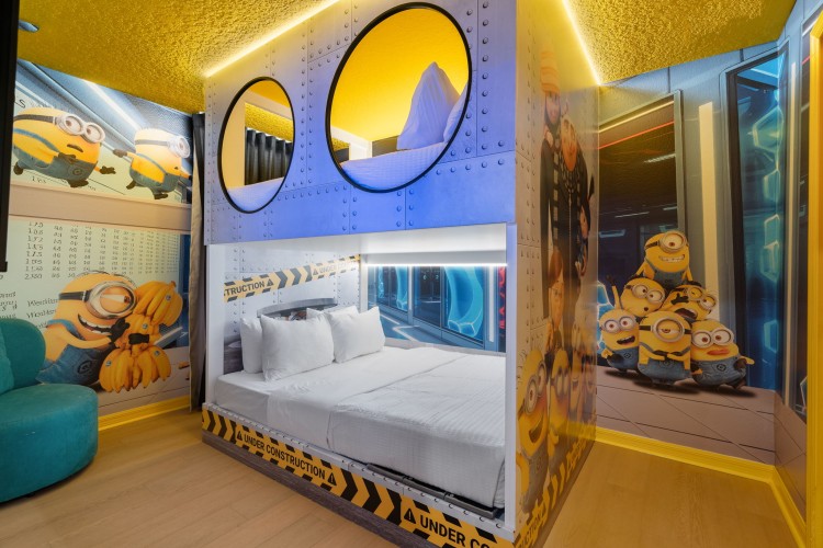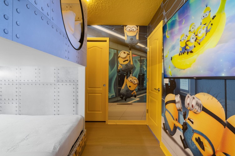 • Quarto temático Minions com uma beliche (configuração: 2 colchões Queen)