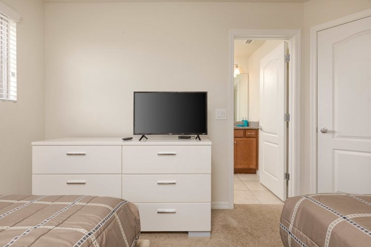 • 2 Suítes com 1 cama casal de tamanho padrão (Full) e 1 cama de solteiro cada;