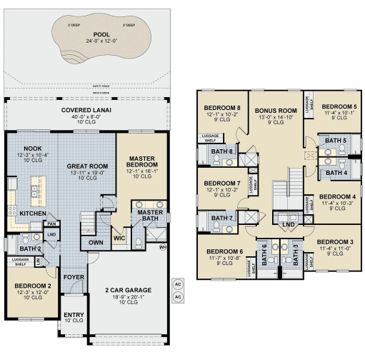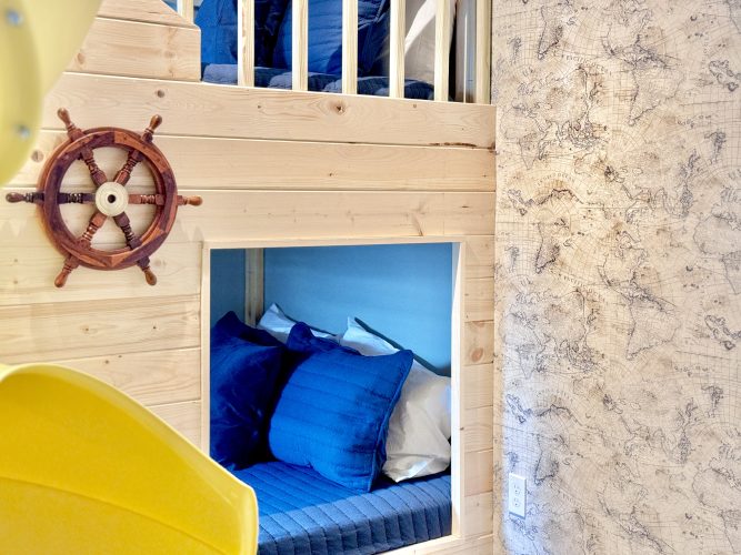 • 2 Suítes com Beliche, cada uma com dois colchões tamanho casal padrão (Full);
