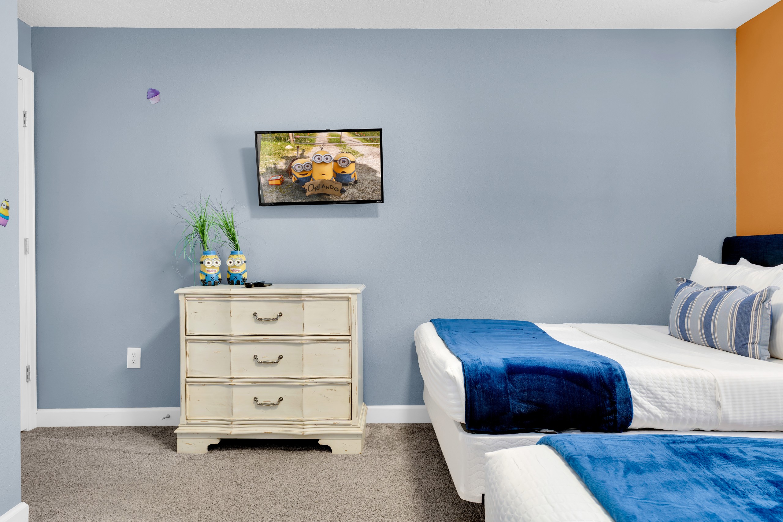 • Quarto temático dos Minions com duas camas de casal e TV Vizio 42″