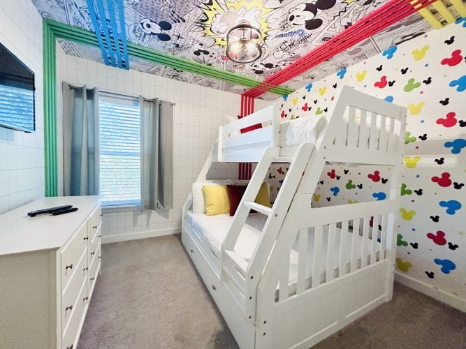 • 1 Quarto com beliche (1 cama casal padrão Full + 1 cama de solteiro)