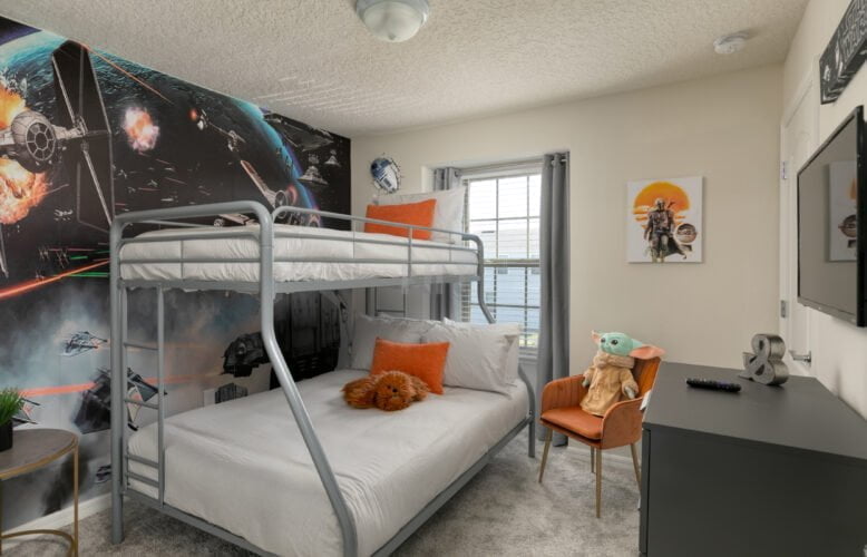 • 1 Quarto com uma beliche que acomoda um colchão de solteiro e um colchão de casal tamanho padrão (Full);
