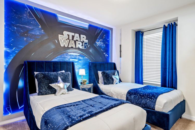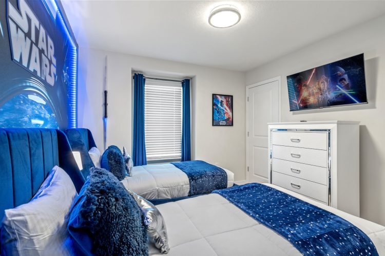 • 2 quartos temáticos com 2 camas de solteiro e Smart TV de 43″ cada