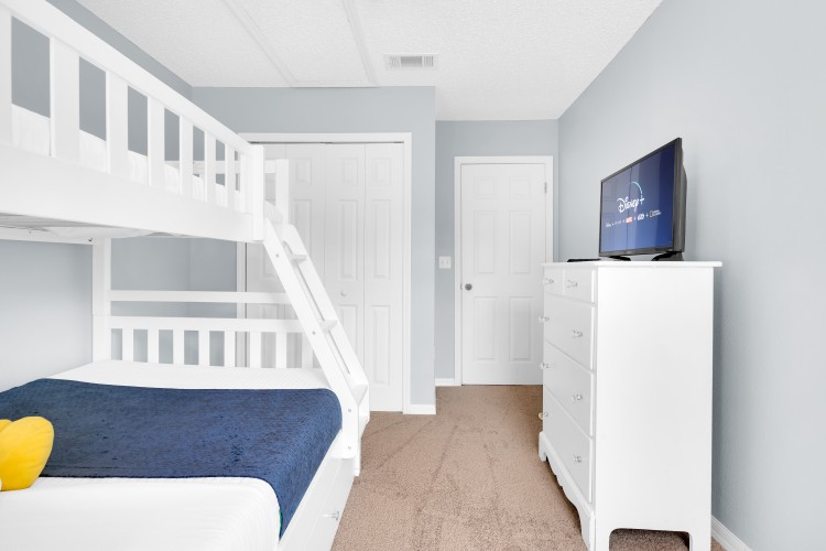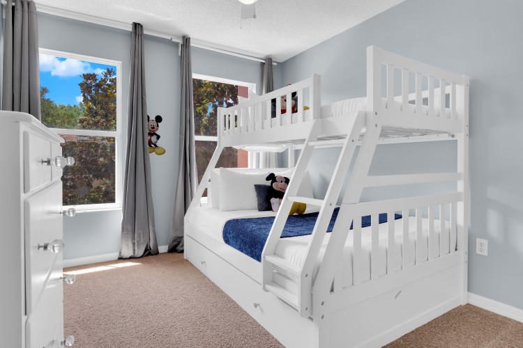 No andar superior, estão a suíte com cama queen, um segundo quarto também com cama queen e um quarto divertido com beliche equipada com um colchão de casal e um de solteiro, além de um banheiro completo. Entre um passeio e outro, aproveite as amenidades do resort, como piscina aquecida, spa, academia e clubhouse.