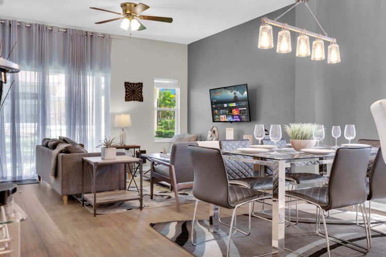 Esta charmosa recém reformada possui de 3 quartos e 2,5 banheiros, está a apenas 15 minutos dos principais parques, sendo a escolha ideal para famílias e grupos que querem aproveitar o melhor da região com conforto e praticidade. Você encontrará uma sala de estar ampla para relaxar, uma área de jantar perfeita para reunir todos e uma cozinha totalmente equipada para preparar suas refeições favoritas. O lavabo e a lavanderia completam a conveniência para sua estadia.