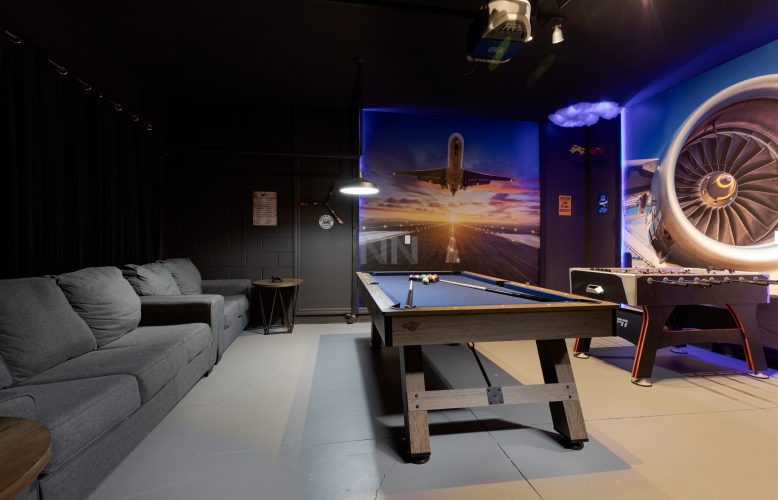 Casa com 5 quartos espaçosos, totalmente equipada, com uma magnifica piscina e salão de jogos com mesa de bilhar, mesa de pebolim e videogames, perfeita para uma viagem com amigos e familiares.