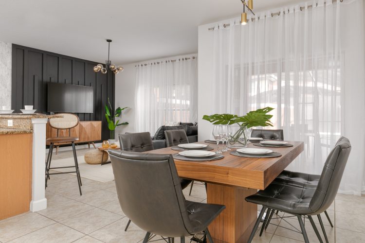 Casa com 4 quartos e 3 banheiros, lindamente decorada, localizada no deslumbrante Condomínios Paradise Palms Resort. Perfeita para passar bons momentos com a família e amigos, desfrutando da piscina privada. Cozinha totalmente equipada, possui um balcão com banquetas que permite que você interaja com as pessoas enquanto cozinha.
