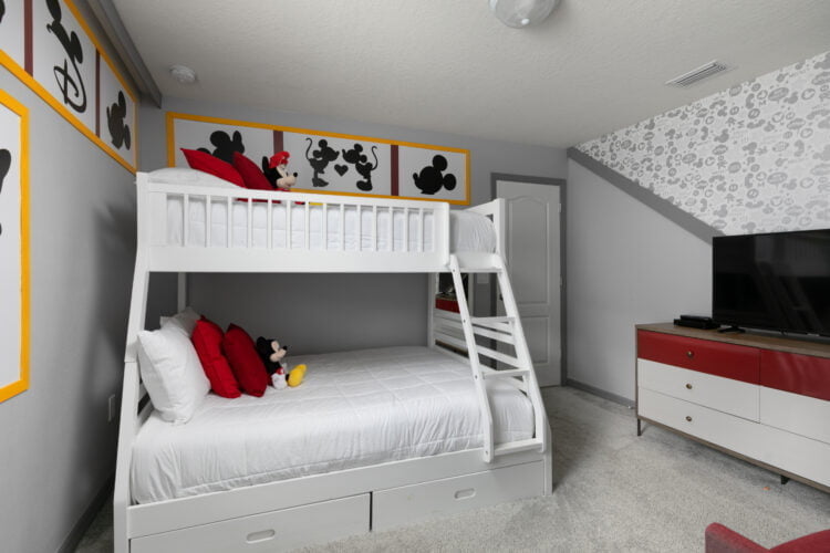 • 1 Quarto com uma Beliche (1 colchão de solteiro e um de casal padrão (full) – Mickey;