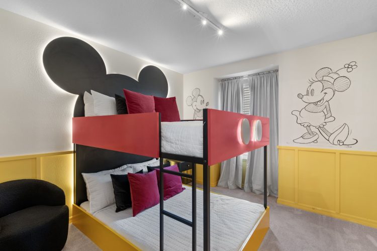 • 1 Quarto com uma beliche com dois colchões de tamanho casal padrão Full (Temático – Mickey);