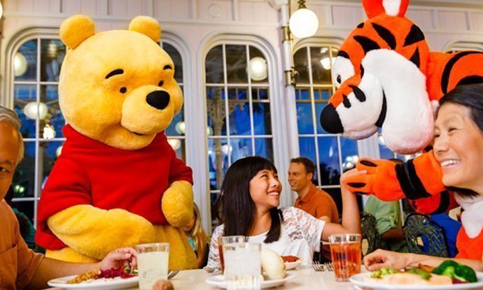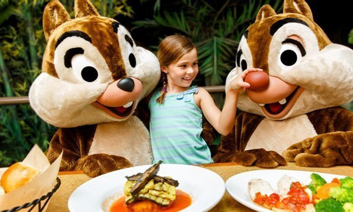 Nos 4 parques temáticos e em alguns resorts é possível fazer refeições (café da manhã, almoço e jantar) com os principais e mais amados personagens da Disney. Os valores variam de US $15 a US $60 e o processo de reserva é bem simples.
