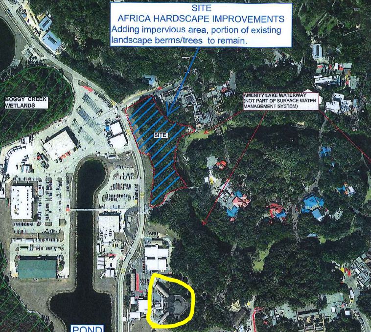 Na papelada arquivada na agência de gestão de água do distrito da Flórida, agora sabemos que o teatro Festival of the Lion King será movido para uma uma área na África. Será a sua esquerda quando você atravessar a ponte, atrás do restaurante Tusker House. Imagineers foram vistos na área tomando algumas medidas.