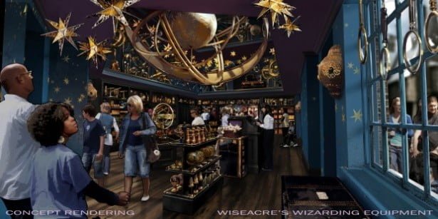 Wiseacre’s Wizarding Equipment – Telescópios, ampulhetas e bussolas, nessa loja os visitantes poderão comprar todos esses itens;