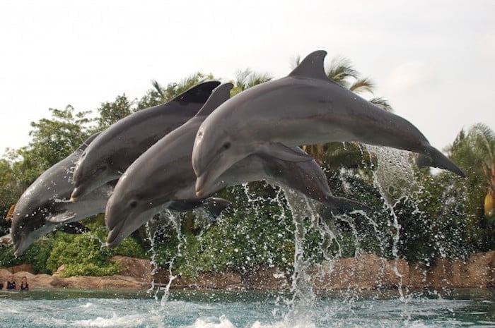 18 – Os golfinhos da Discovery Cove comem em média de 8 a 10 quilos de peixes por dia. O parque apresenta um programa de reprodução da espécie nariz-de-garrafa.