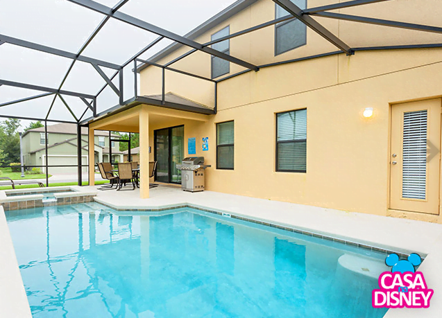 2. Que tal aproveitar os dias quentes do verão nessa maravilha de piscina privativa com direito a spa? A partir de US$ 249 a diária, você pode alugar casa de 6 dormitórios e 4 banheiros, localizado em Kissimmee, a apenas 10 minutinhos dos parques da Disney. Bem decorado e super equipado. Aproveite para fazer um almoço em família, servido à beira da piscina! Só cuidado para não exagerar na comida, o calor de Orlando pede alimentos leves! Saiba mais.